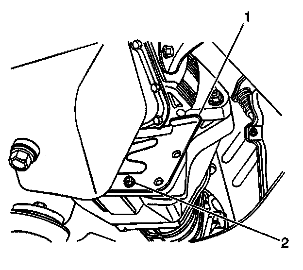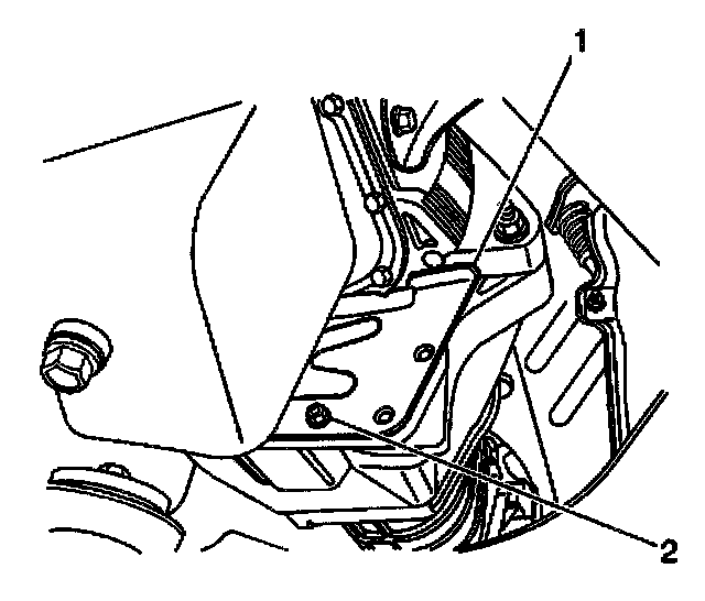 32. Remove the 2 bolts (1) and the starter motor. Refer to Starter Motor Replacement.