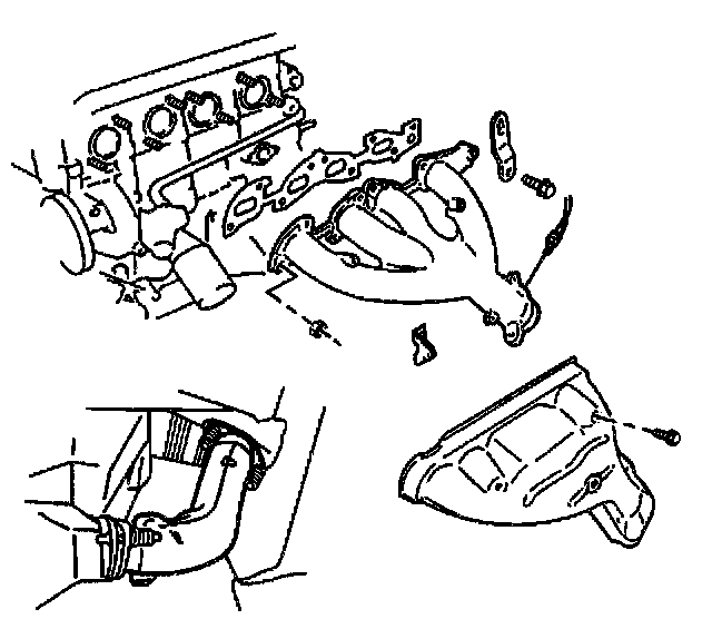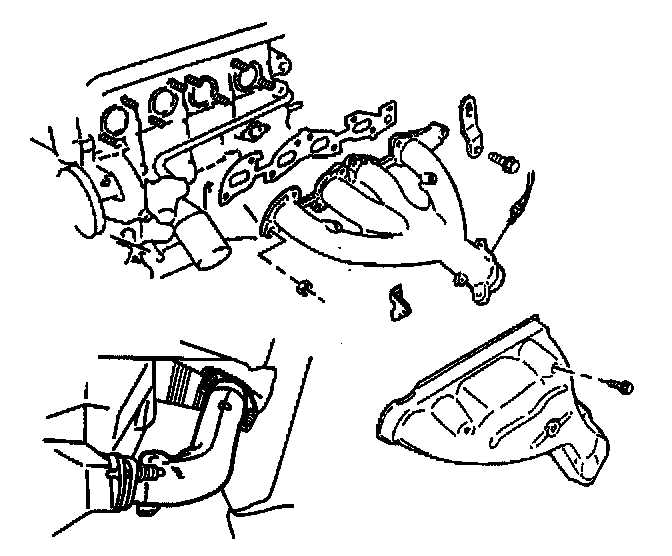 9. Remove the 2 bolts and separate the front pipe assembly from the exhaust manifold on vehicles without the Three Way Warm Up (TWC) catalytic converter.