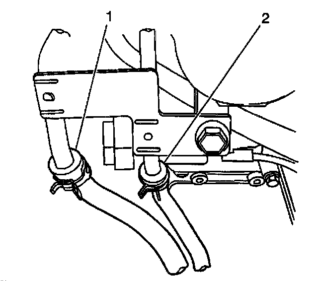 18. Connect the fuel feed and the fuel return hoses (1,2).