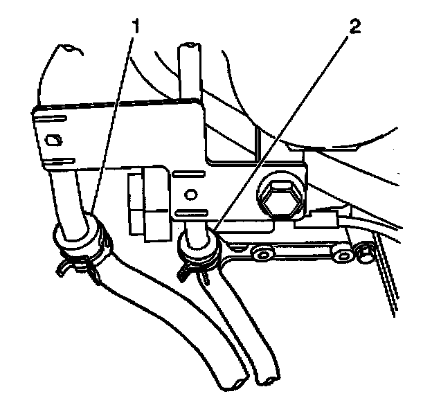 27. Disconnect the fuel feed hose (1) and the fuel return hose (2).