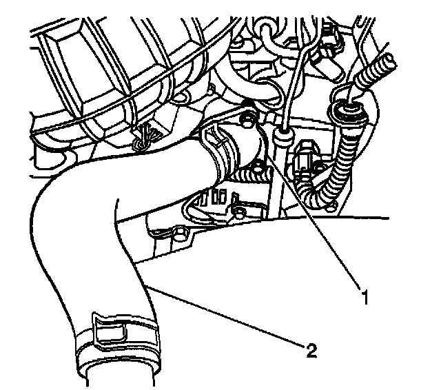 3. Loosen and reposition the hose clamp on the radiator inlet hose at the thermostat housing (1).