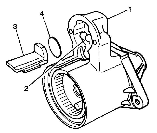 7. Install the pinion drive lever seal (3) and the plate (4) to the drive housing (1).