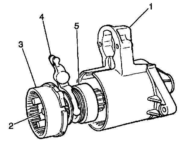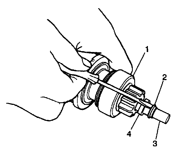 4. Install the overrunning clutch retaining ring to the gear shaft assembly. Slide the overrunning clutch stop ring (4) away from the overrunning clutch assembly to cover the overrunning clutch retaining ring (2).