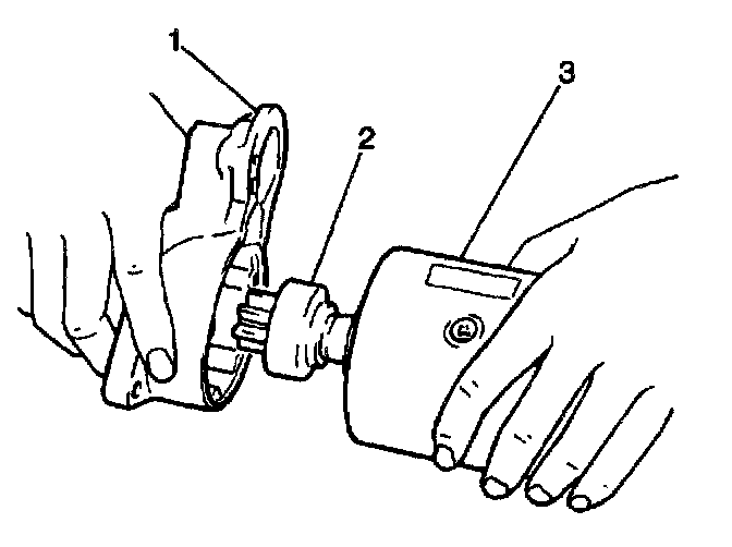 9. Install the 3 idle gears (3) to the drive housing (1). Secure with the idle gear retainer (2).