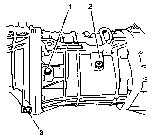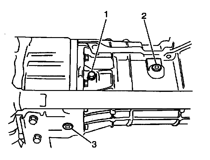 Transmission oil level/filler plug (1) and (2).