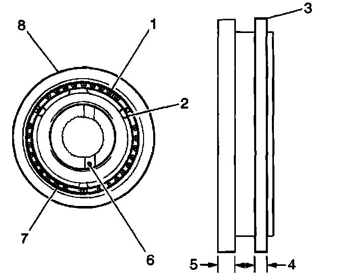 18. Use the J 22912-01 and a press arbor in order to remove the following components from the main shaft (4):