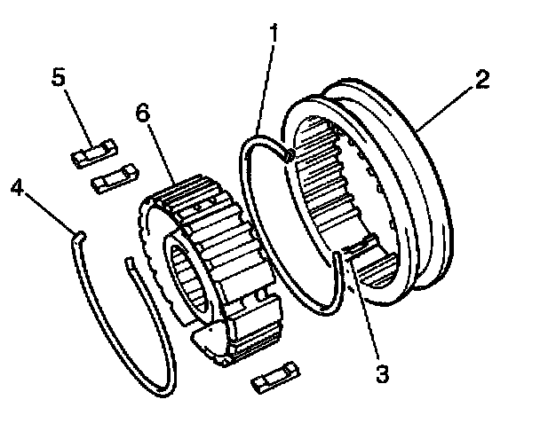 4. Remove the high speed synchronizer springs and the synchronizer keys from the high speed synchronizer hub.