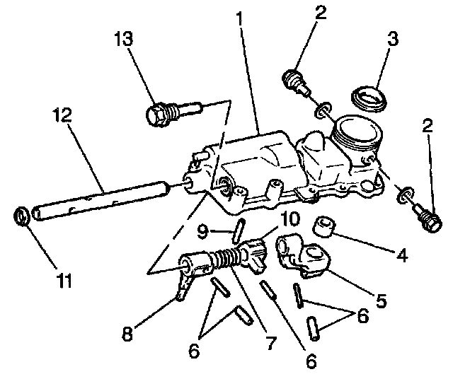 4. Remove one roll pin (6) from the gearshift shaft (12). The removal will release tension on the gearshift limit spring (7).