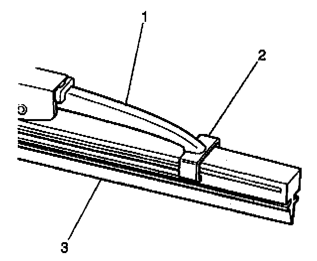 REMOVAL PROCEDURE1. Straighten the windshield wiper blade retaining tabs (2) which secure the windshield wiper insert (3).