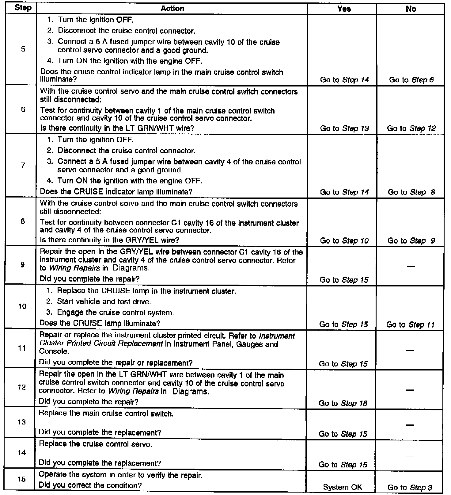 Cruise Control Indicator Lamp Inoperative: