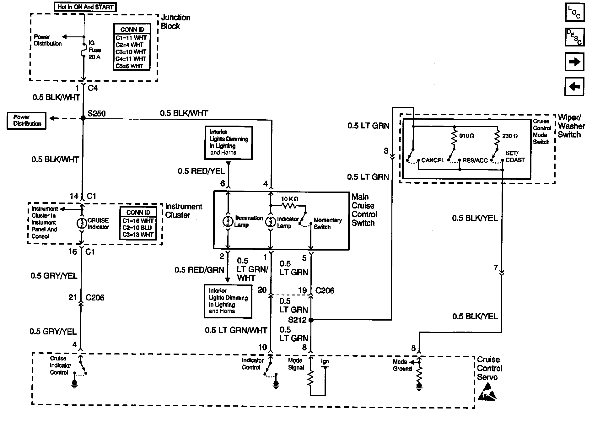 Cruise Control Schematics: Clutch Indicator, Main Cruise Control And Mode Switch: