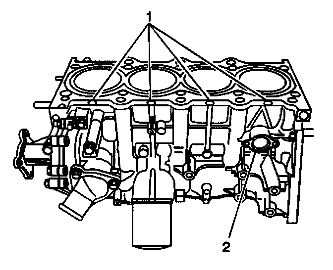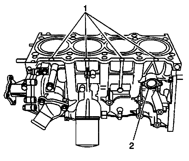 3. If necessary, remove the engine block core plug (2).