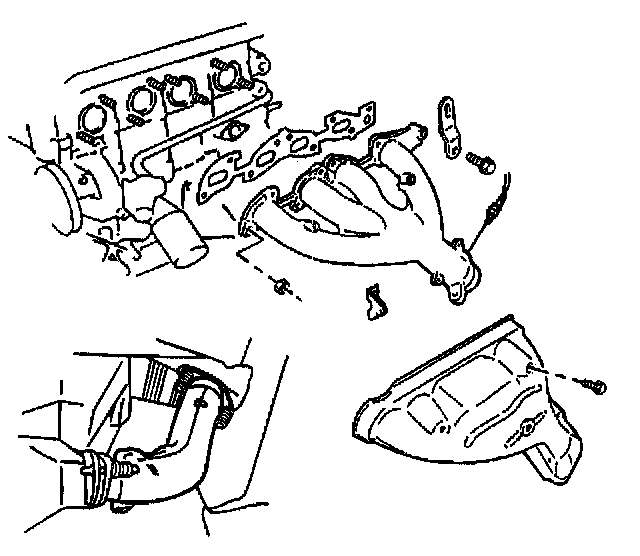 23. Install the engine block-to-catalytic converter support bracket on vehicles with the PUP catalytic converter.