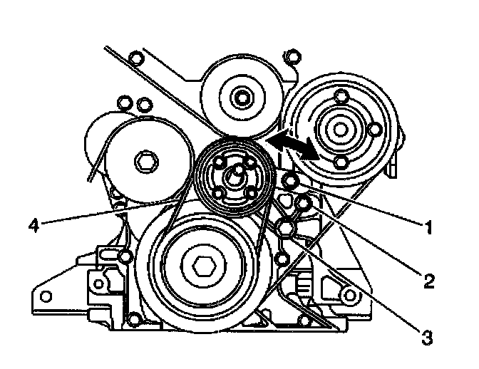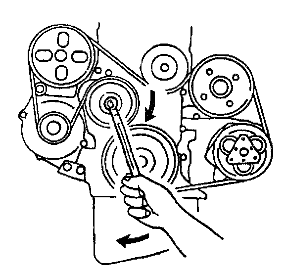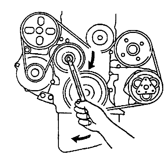 31. Rotate the belt tensioner clockwise and remove the accessory drive belt.