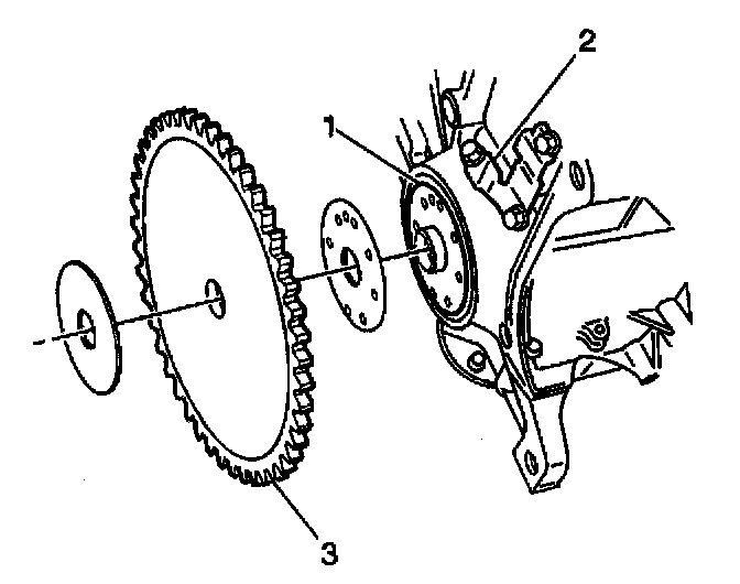 30. Remove the 2 tensioner mounting bolts (1,3) and the tensioner.