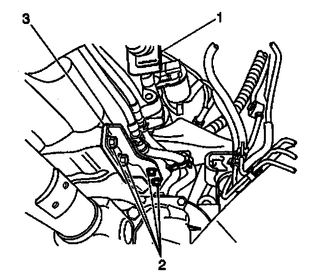 10. Support the transmission. Remove the 4 bolts and the right side engine-to-transmission support bracket (3).