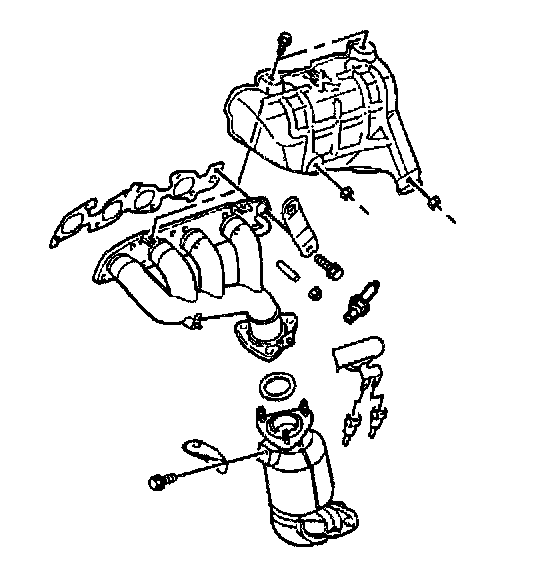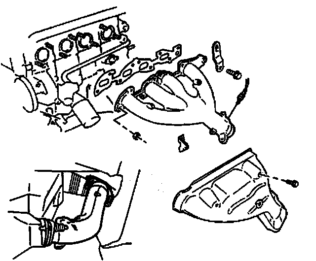 15. Remove the 3 nuts and separate the front pipe assembly from the exhaust manifold on vehicles equipped with the PUP catalytic converter.