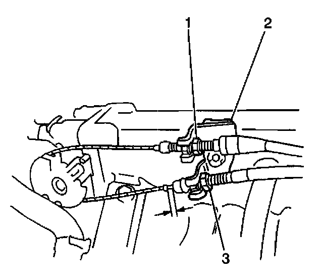 32. Remove the bolt and the throttle cable bracket (2) from the intake manifold.
