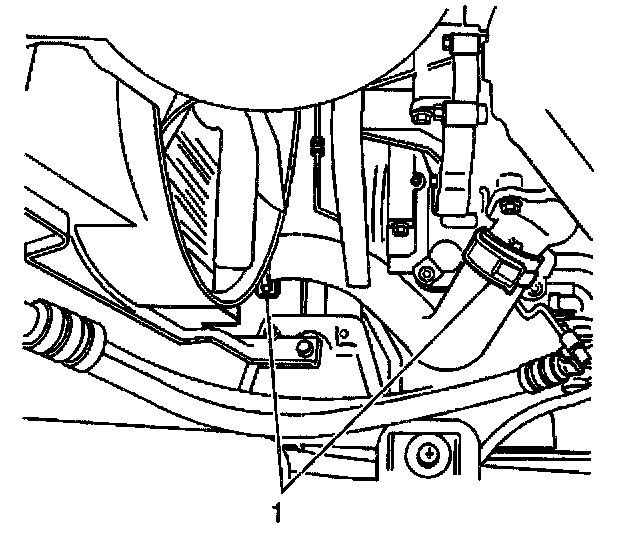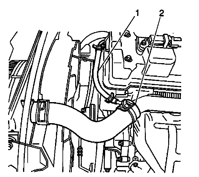 7. Remove the automatic transmission fluid cooler lines (1) from the radiator on automatic transmission equipped vehicles. Cap the open lines to prevent leakage.