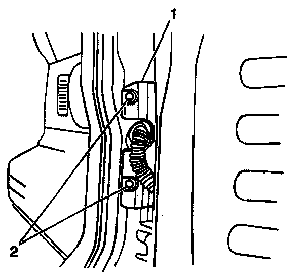 4. Install the tail lamp assembly (1) to the vehicle. Secure the assembly with the 2 screws (2).