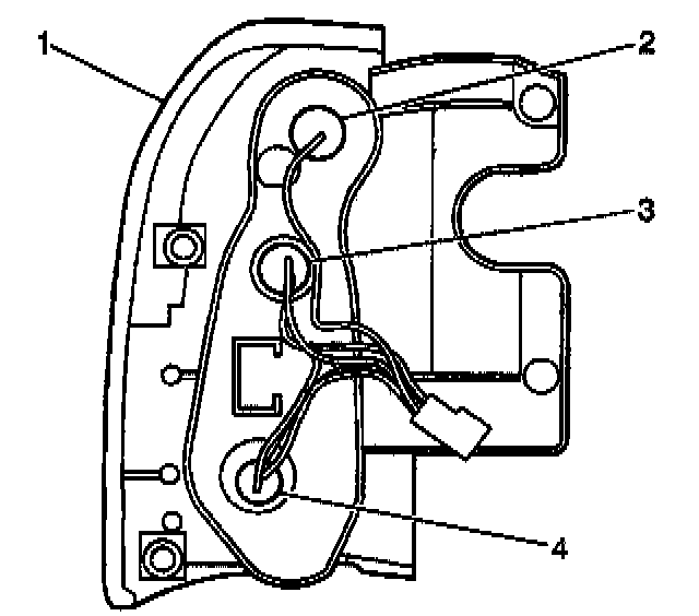 2. Pull the tail lamp assembly (1) rearward in order to access the tail lamp bulb electrical connector (4).