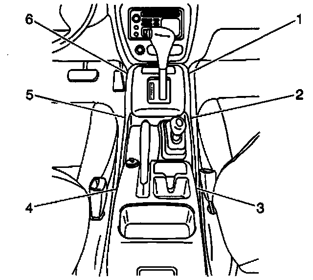 3. Remove the 4 screws (1,6,3,4) and the 2 plastic retaining clips (2,5) from the console.