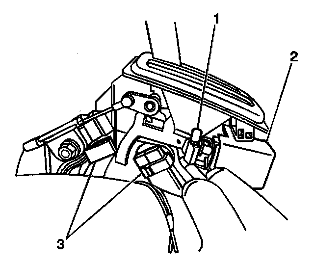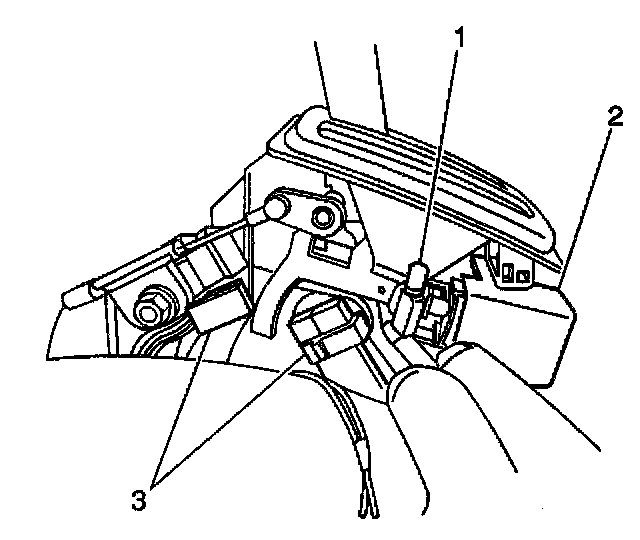 5. Remove the shift lock solenoid connector (3) from under the carpet.