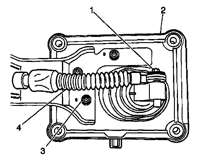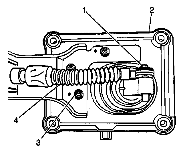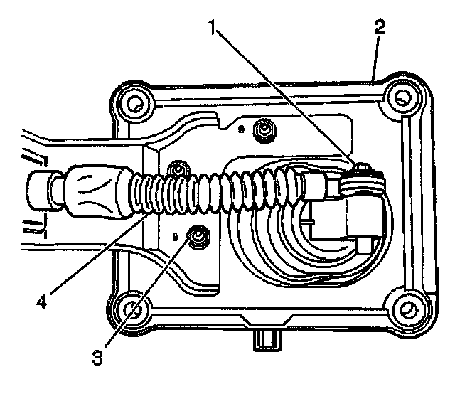 6. Install the shift select cable (4) into the shift select cable bracket at the transmission.
