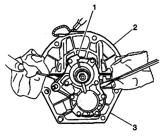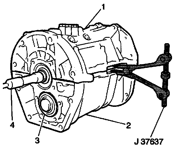 9. Use the J 37637 in order to separate the upper (1) and lower (2) case halves.