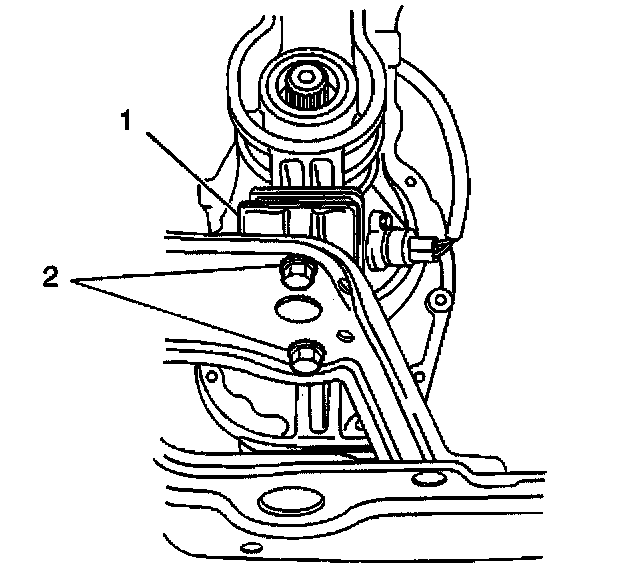 1. Install the rear transmission mount (2) to the extension case (1). Secure with 1 bolt.