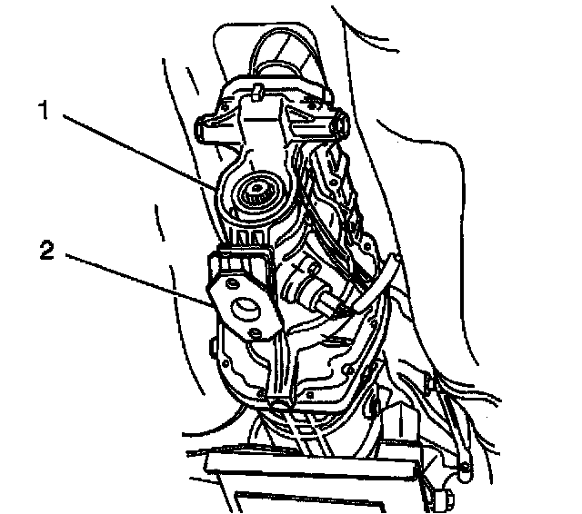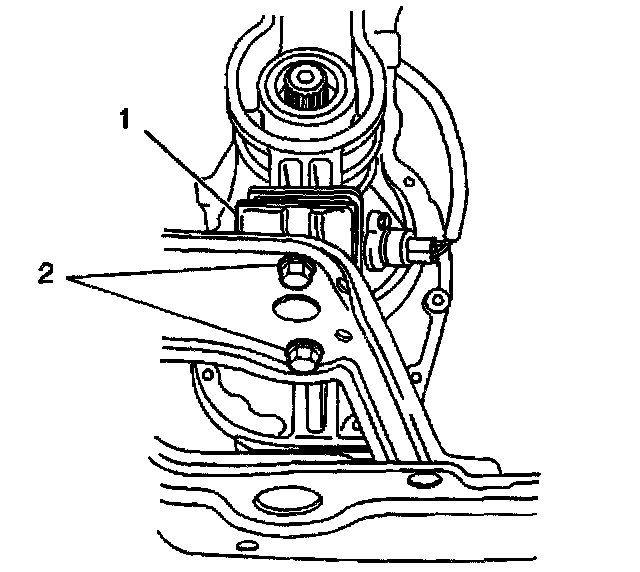 3. Install the 2 bolts (2) to the rear transmission mount.