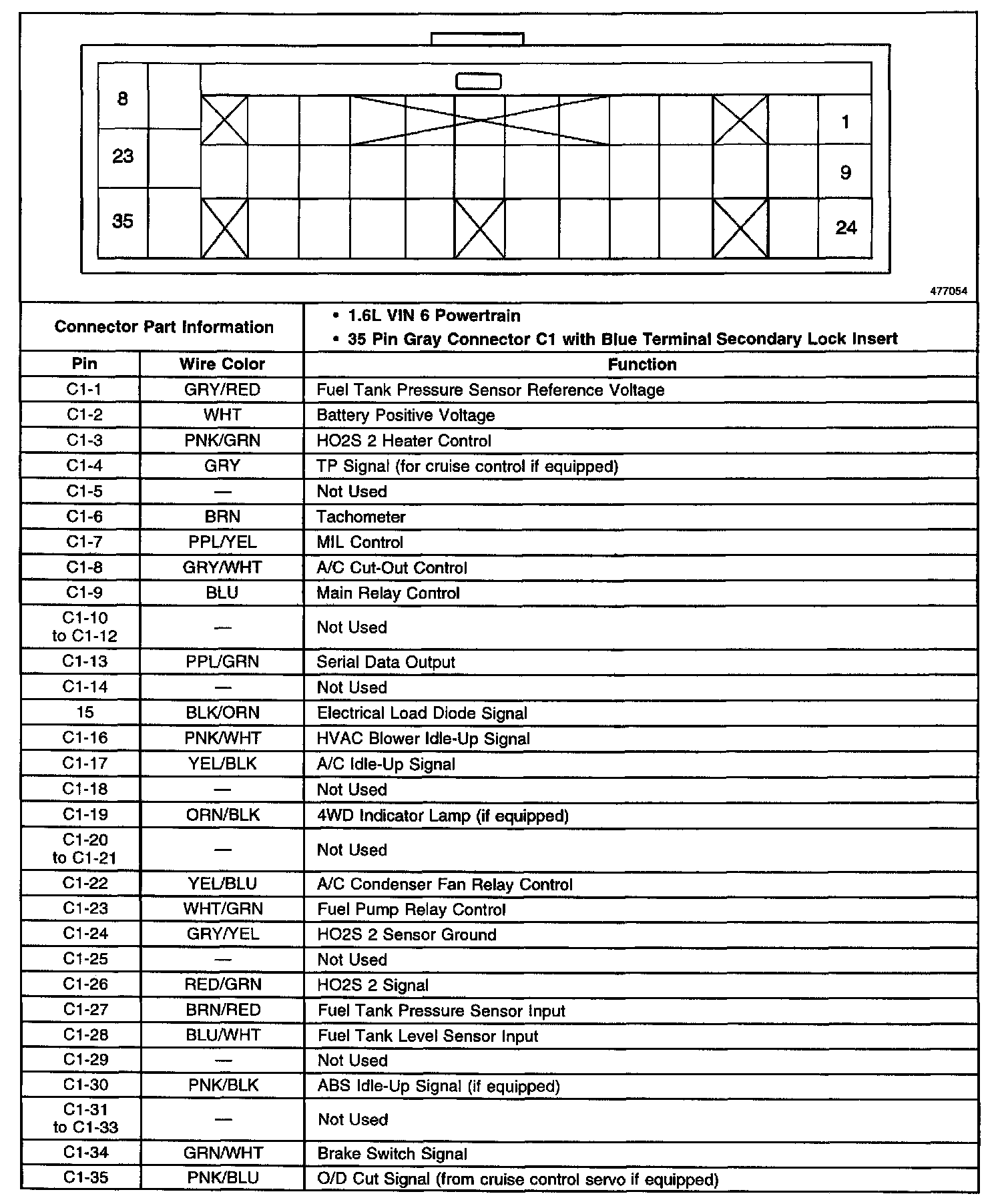 Back View Of The PCM Connector C1: