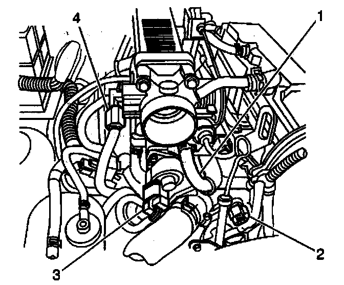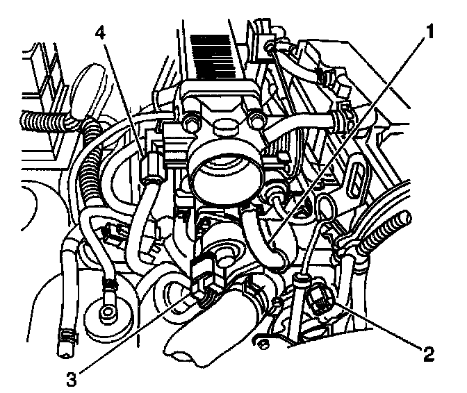 15. Remove the coolant hose from the throttle body (1).