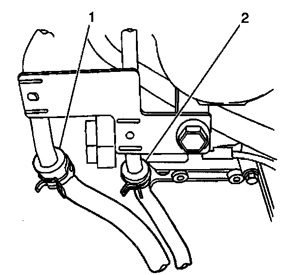 14. Install the fuel return hose (2) to the fuel line union.