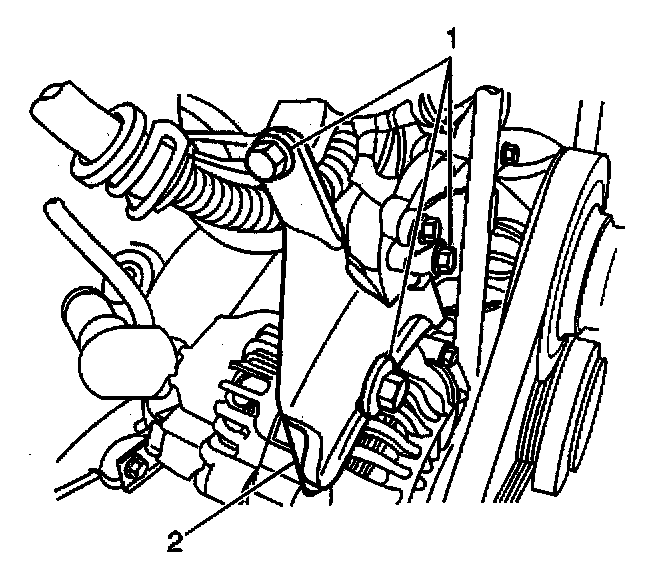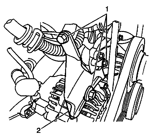21. Remove the upper generator mounting bracket (2).