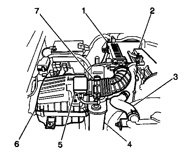 8. Remove the air intake hose (7) from the throttle body.