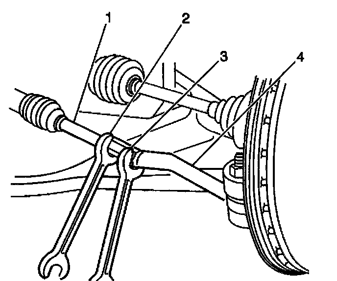 3. Measure the length of the left inner tie rod (1) and the left outer tie rod (4).
