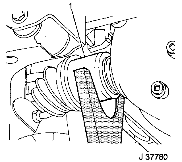 10. Remove the right side drive axle (1) from the front differential housing using the J 37780.