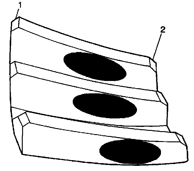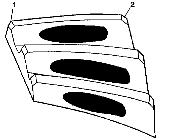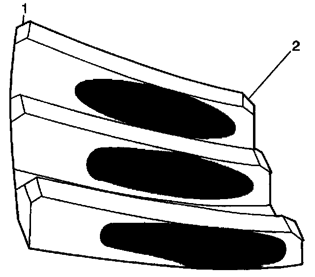 1. Inspect the drive side (2) of the ring gear teeth (concave) and the coast side (1) of the ring gear teeth (convex).