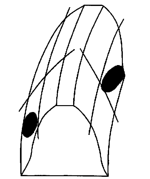 ^ A coast pattern from heel (2) to toe (1) has a normal drive contact.