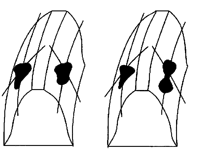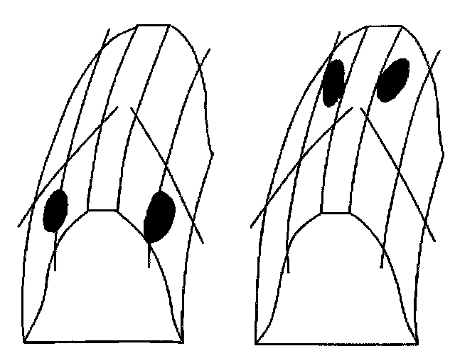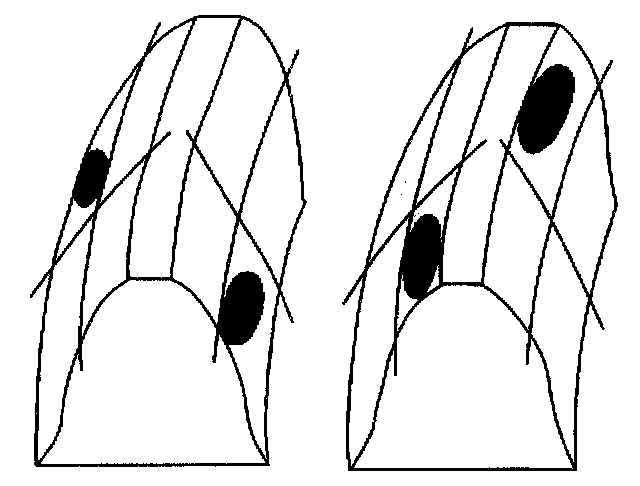 ^ A typical drive pattern from heel (2) to toe (1) has a normal drive contact.