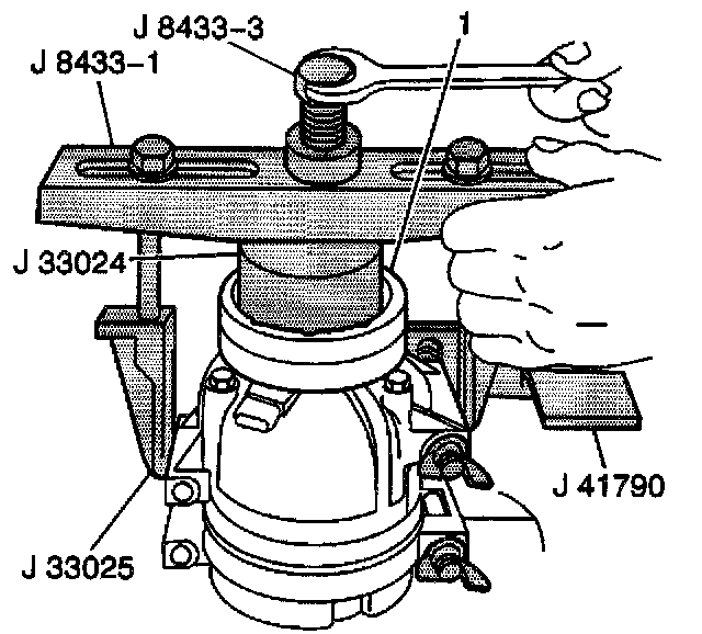 5. Turn the center forcing screw of the J 8433 to press the clutch coil onto the front head until the clutch coil is fully seated.