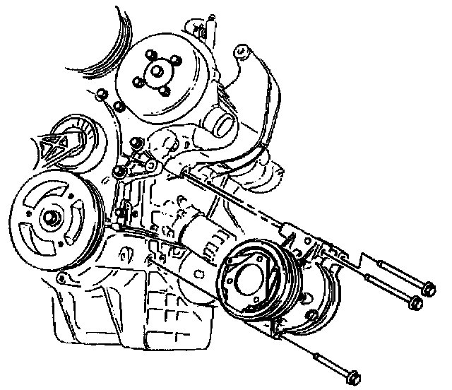 8. Remove the compressor mounting bolts. Place the compressor on the frame.