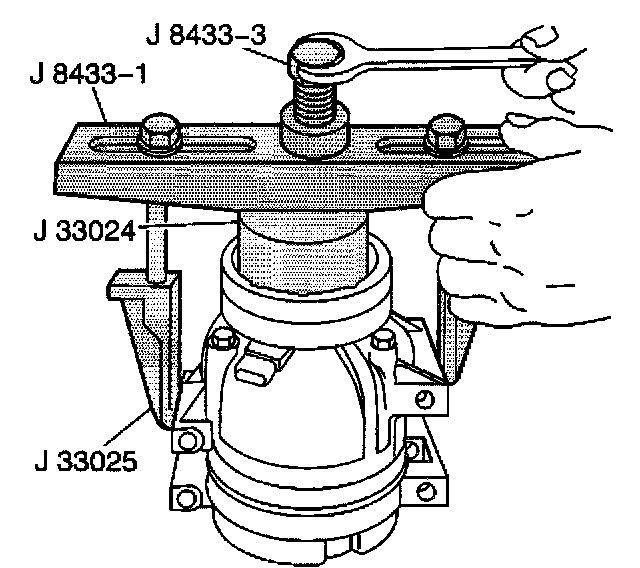 2. Place the J 33024 over the internal opening of the clutch coil housing and align installer with the compressor front head.