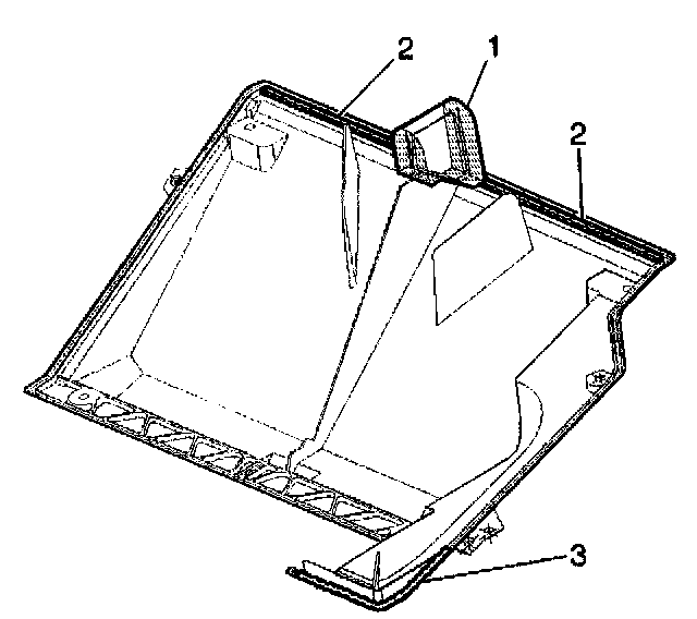 8. Remove and discard the cavity (1), whistle (2), and permagum (3) seals from the heater core cover.