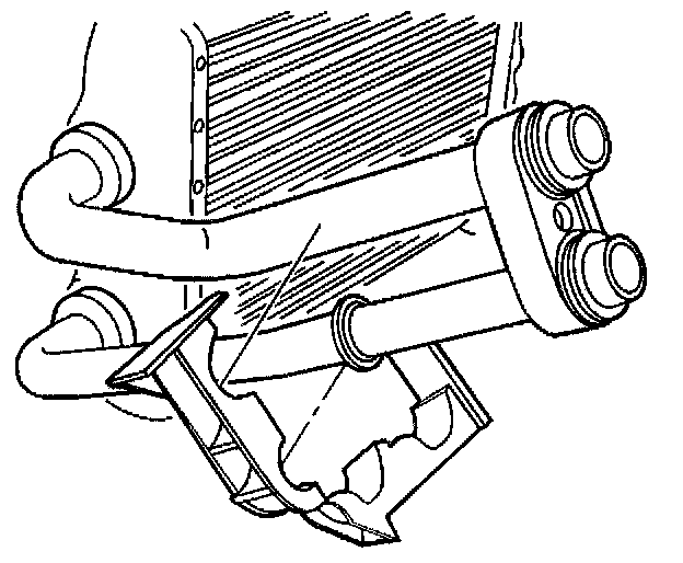 Align the depression in the clamp to the ridge on one of the heater core pipes, then close the clamp to secure.