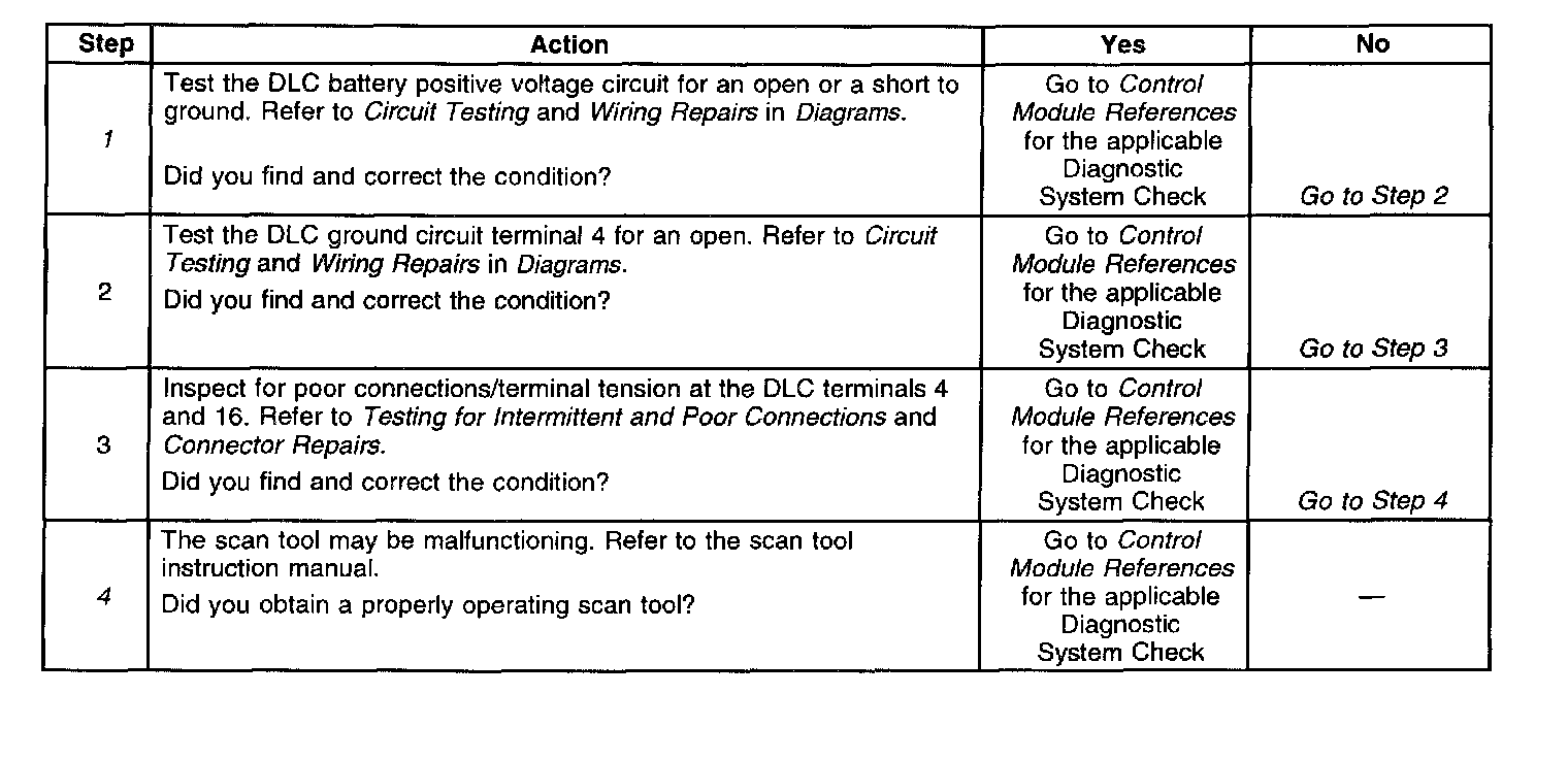 4. The DLC battery positive voltage and ground circuits are functioning properly. The malfunction must be due to the scan tool.