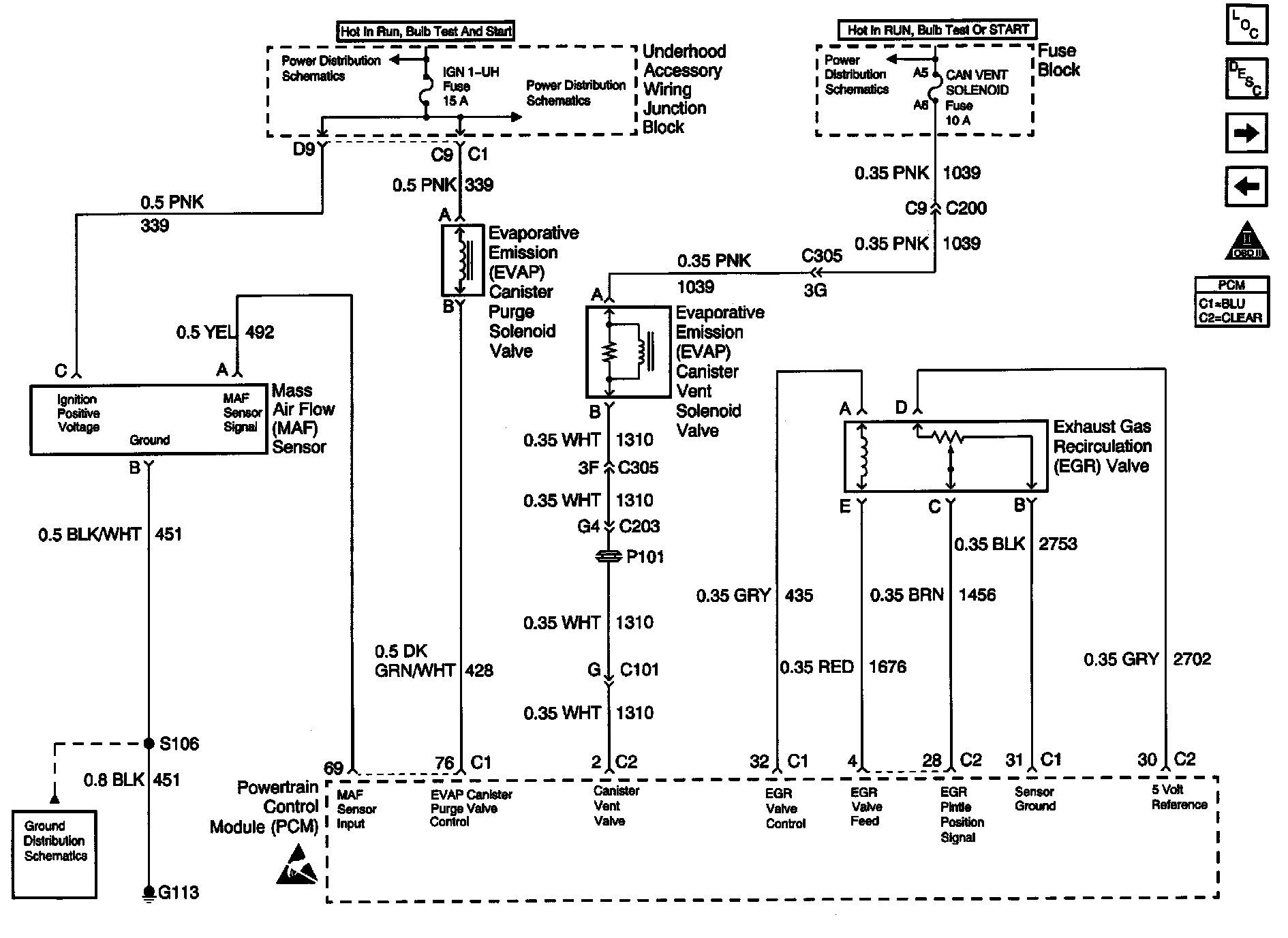 Engine Controls Schematics: Engine Data Sensors, MAF, EVAP Switch, EVAP Valve, EGR: