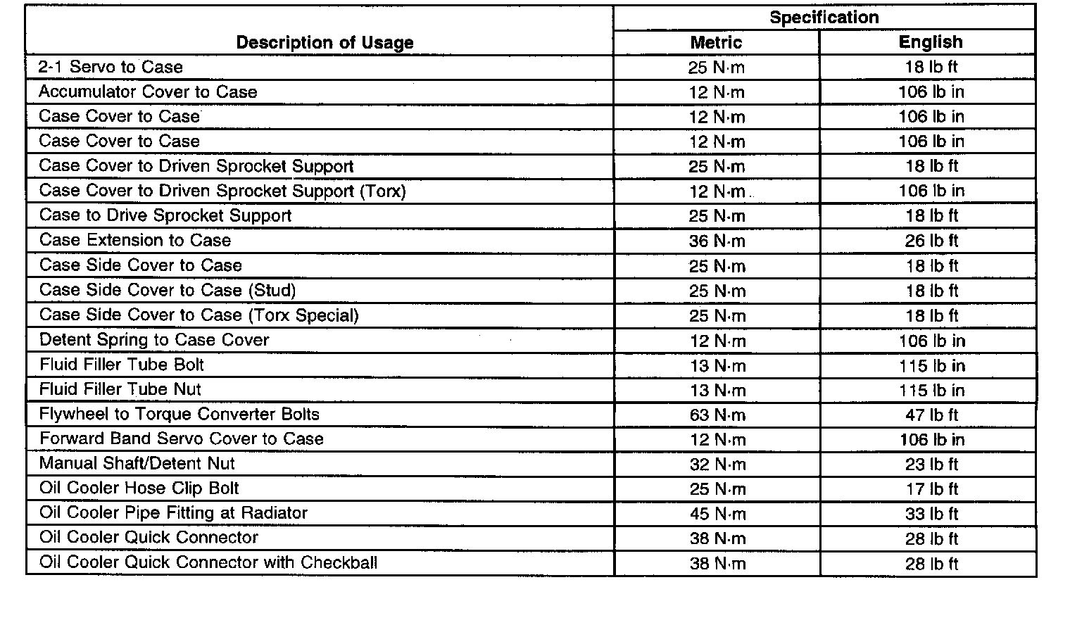 Fastener Tightening Specifications
