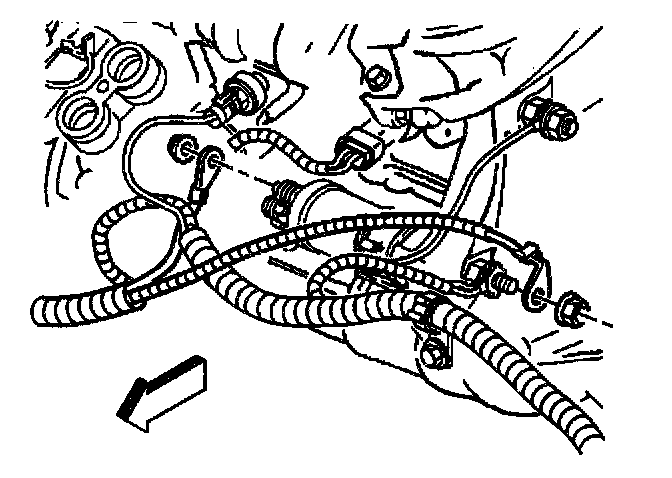 6. Remove the battery ground (negative) cable nut and cable from the transaxle stud.
